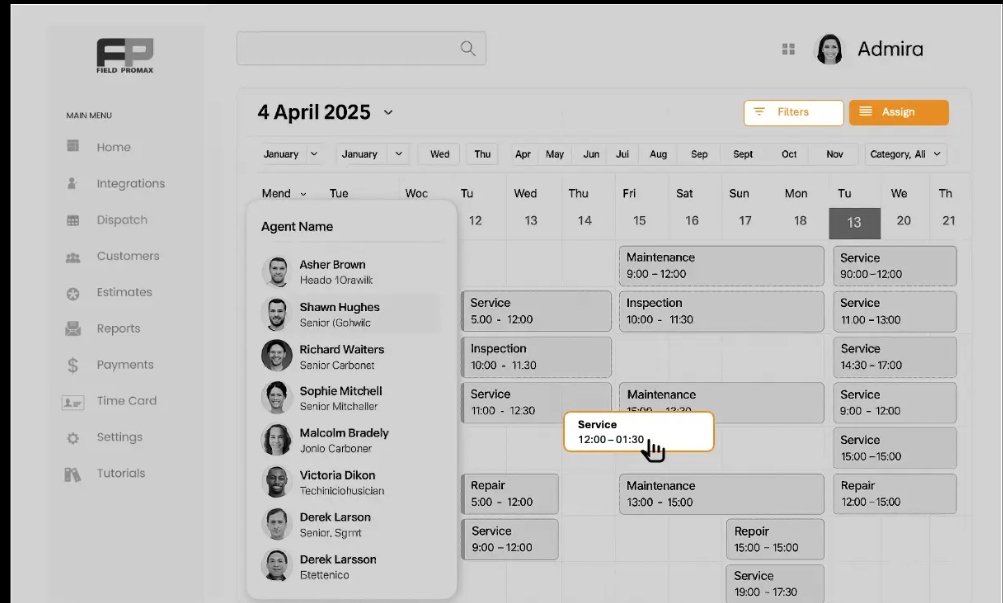 Tools such as Field Promax take it one step further by showing all the recurring schedules on one dashboard. You can filter jobs according to “weekly” and “biweekly,” assign multiple technicians, and modify the preferences of customers in a matter of just a few seconds.